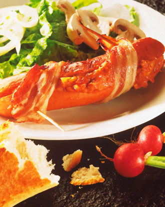 Fylte grillpølser 4 Under 30 min Enkelt Vis alle oppskrifter Send på SMS Avbryt Send Send på e-post * Avbryt Send Fremgangsmåte 8 grillpølser (el. kjøttpølser) 1 ss sennep 1 løk 1 ts kinesisk soyaolje 1 ss tomatpurè 8 skiver bacon Skjær et dypt snitt på langs i pølsene. Rør sammen sennep, finhakket løk, soya og tomatpurè og fordel blandingen i snittene. Klem pølsene forsiktig sammen og surr baconskivene rundt. Baconskivene festes med tannstikkere. Snu pølsene ofte på grillen. Flytt risten høyere opp hvis baconet blir for brunt. En annen variant er å smøre et tynt lag usøtet sennep i pølsesnittet og så legge i tykke strimler hvit ost. Surr baconskivene rundt og fest dem med tannstikkere. Ingredienser 8 stk SUPERGRILL Grilstad produkt i oppskriften SUPERGRILL BACON UTEN SVOR SKIVET