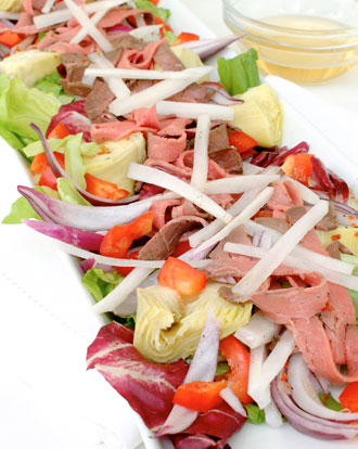 og del artisjokkene i to. Riv salaten i mindre